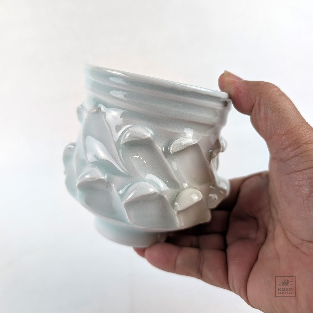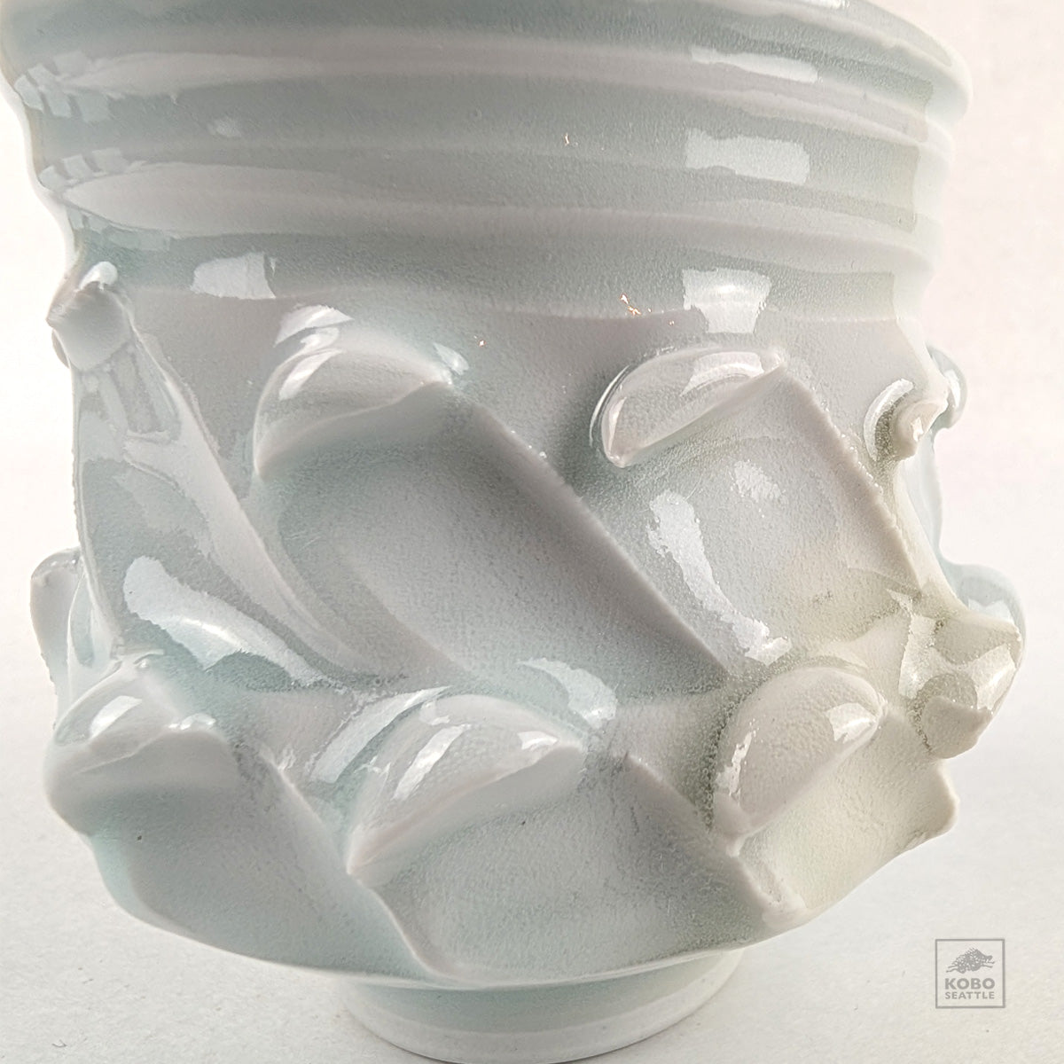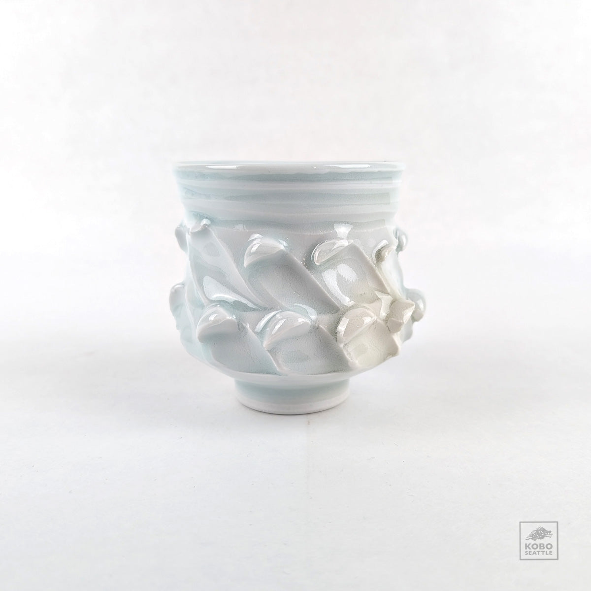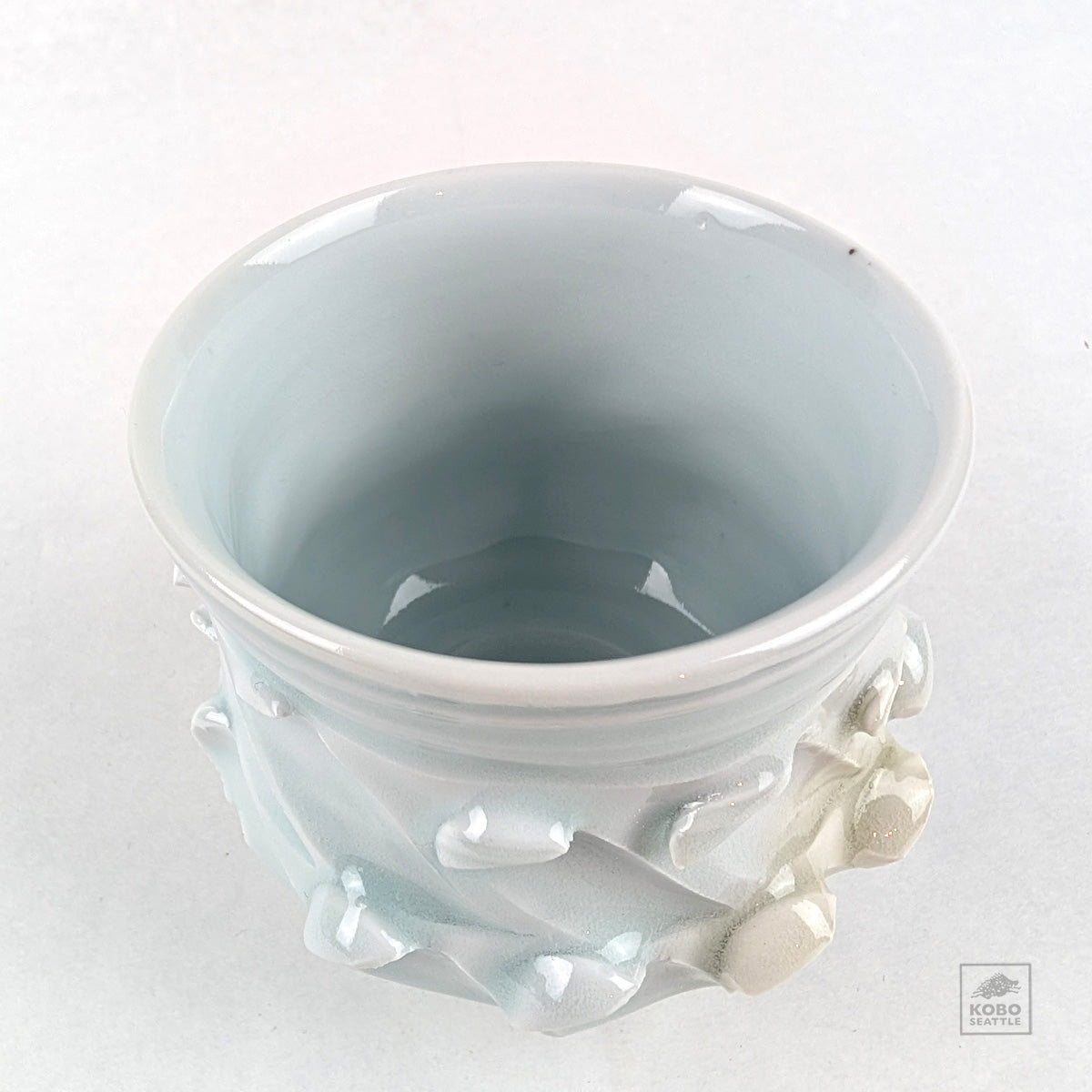 Cup with heavy texture, Porcelain, Celadon Glaze, 410 reduction