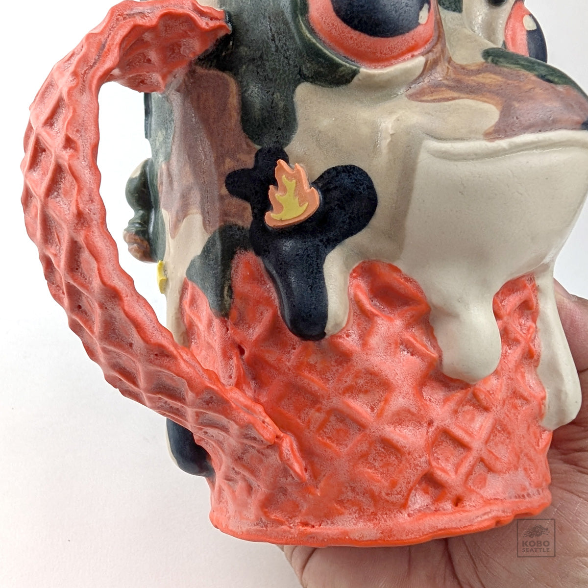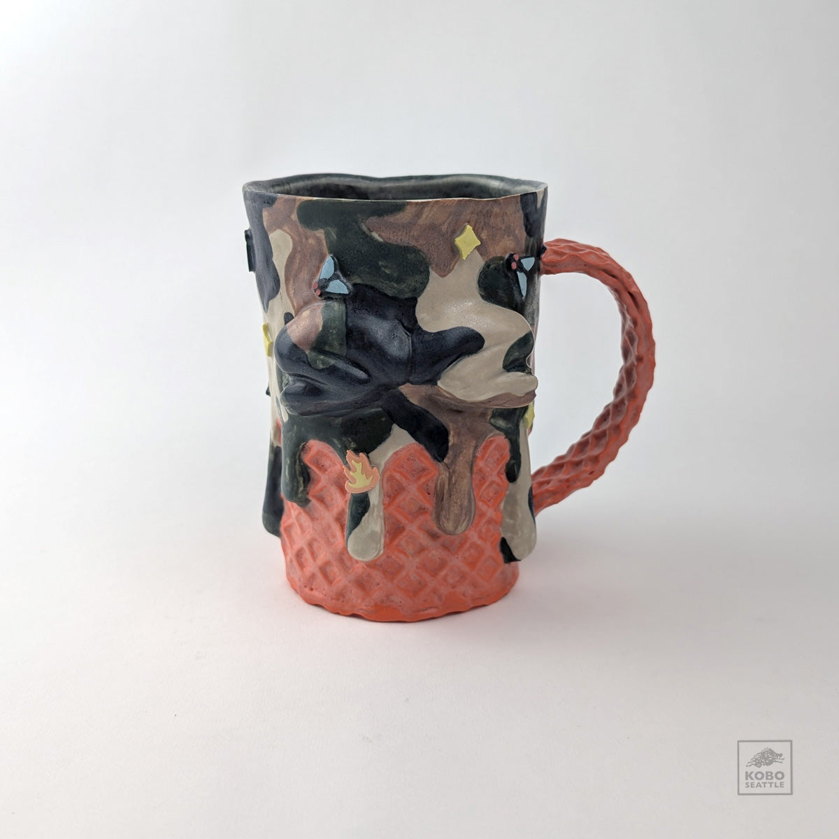Stoneware, underglaze and glaze, cone 6 oxidation.