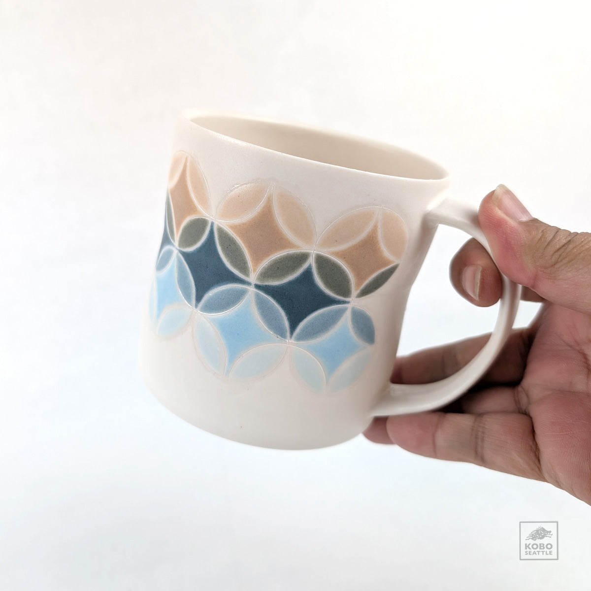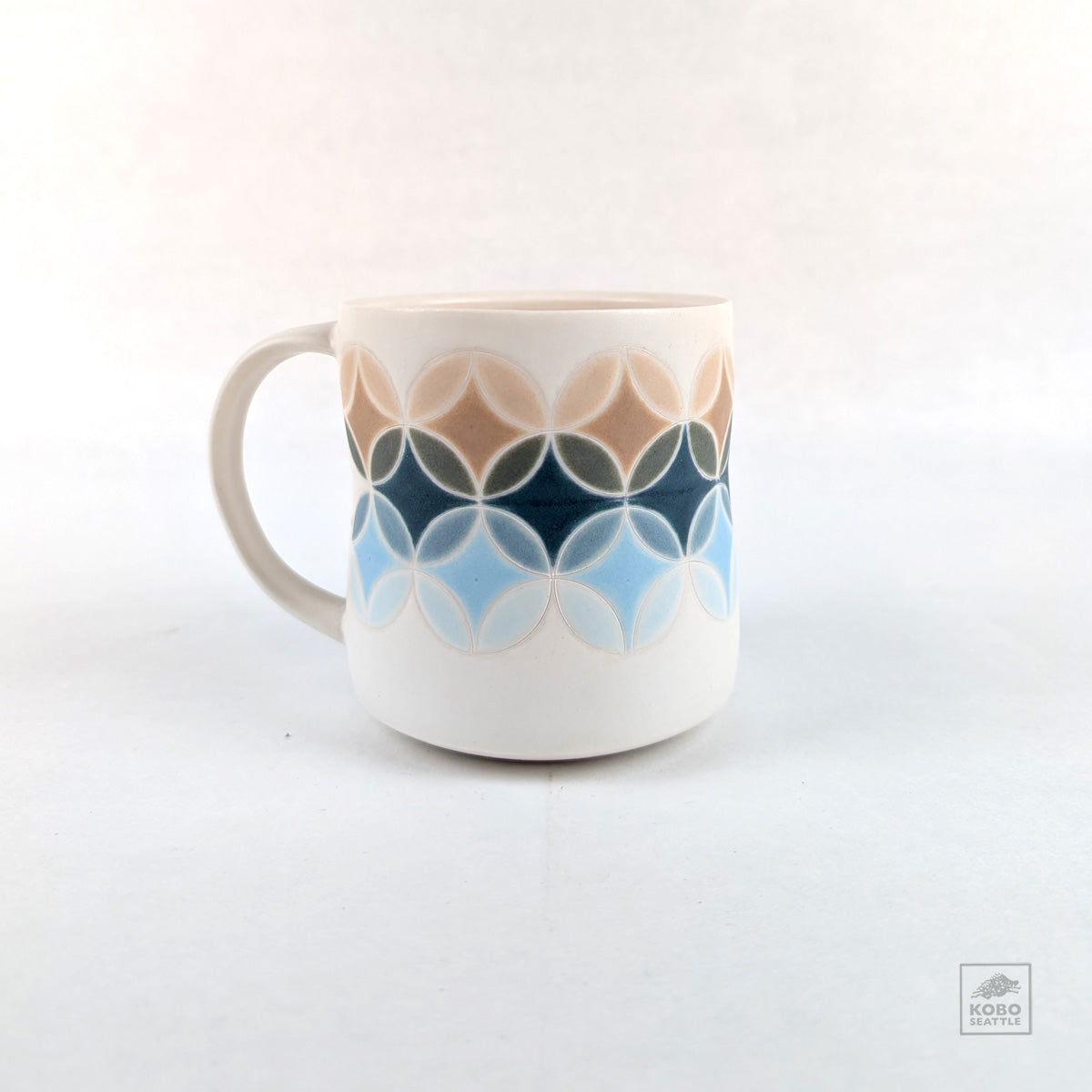 Mug, porcelain, double wedding ring, ombré, blue-brown