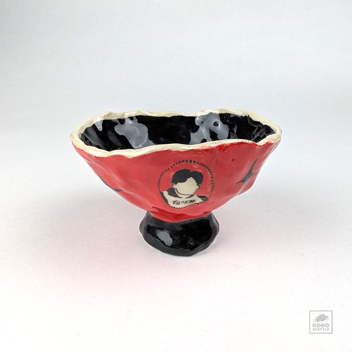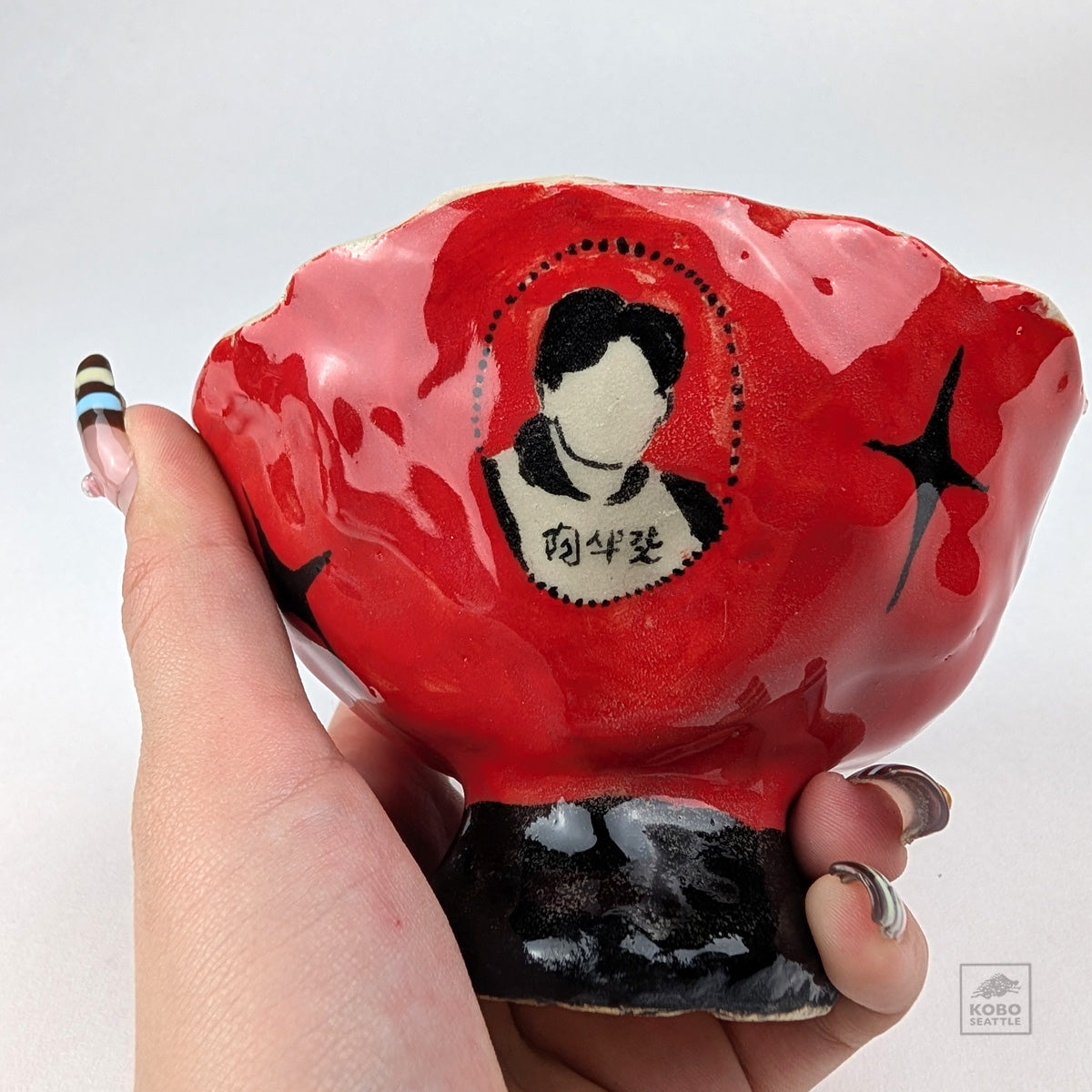 Handbuild stoneware cup under glazed with Lao Gan Ma Grandma