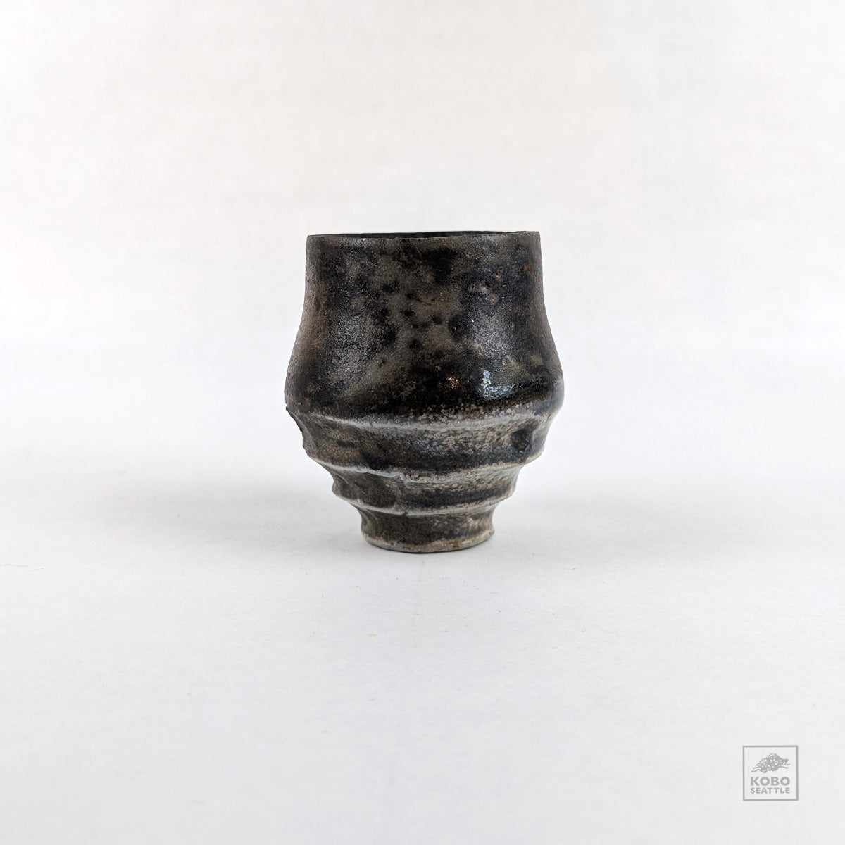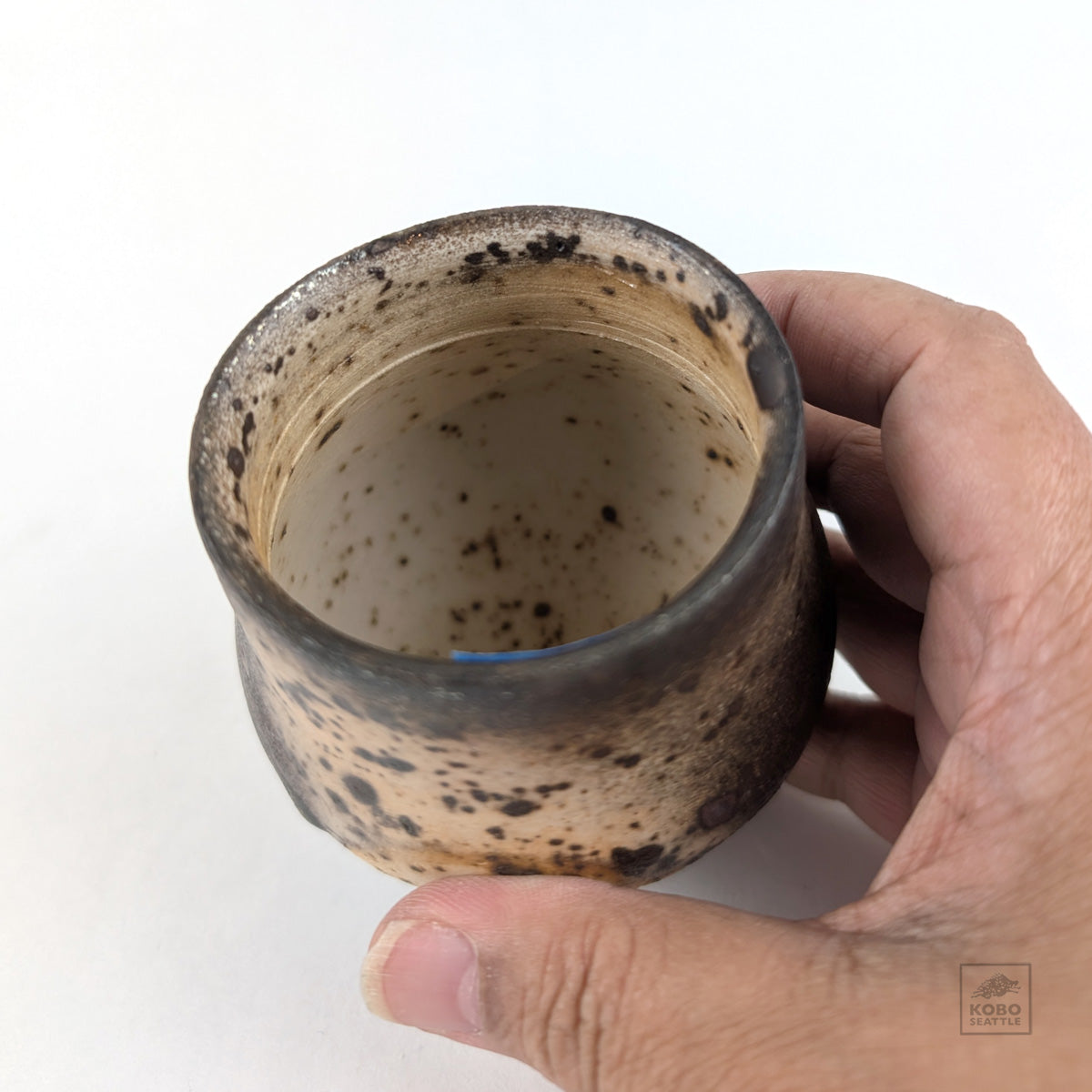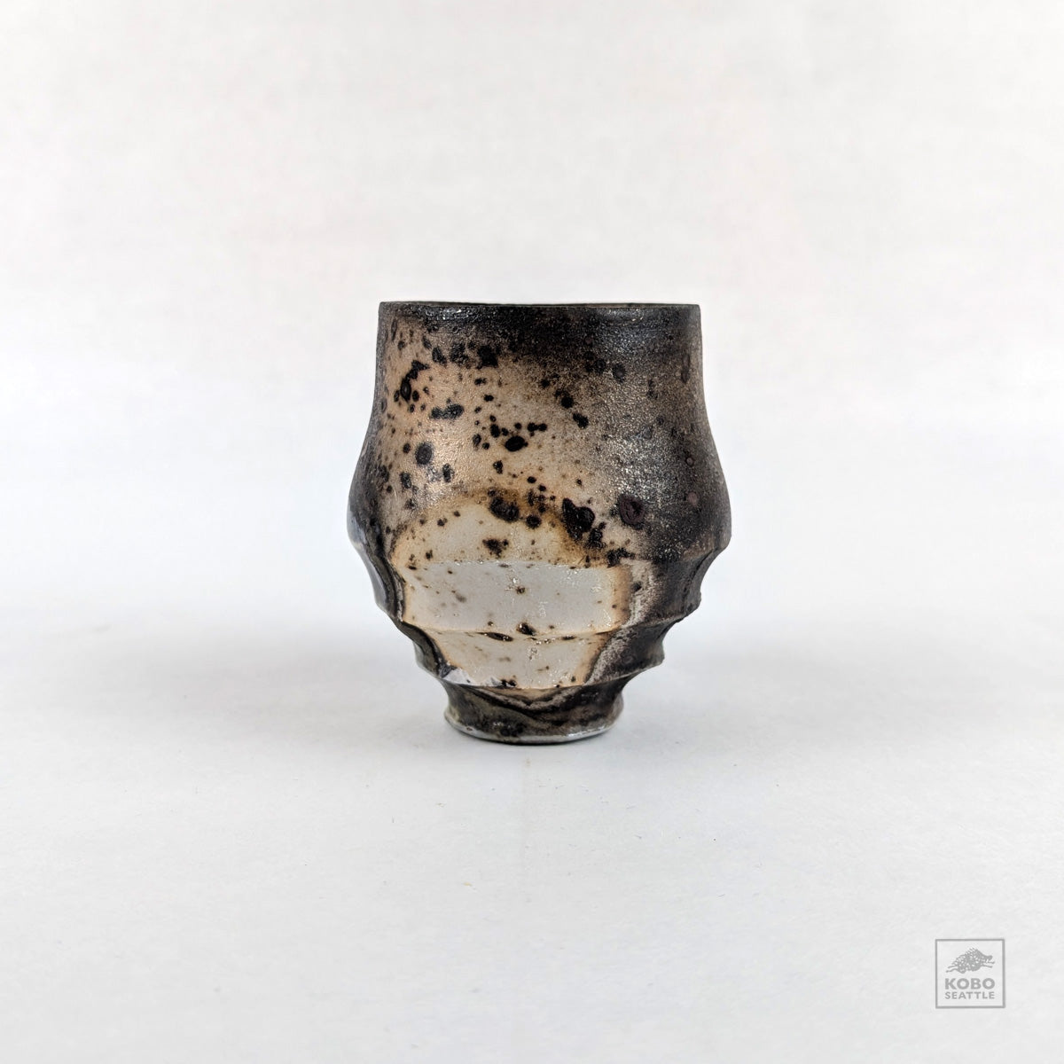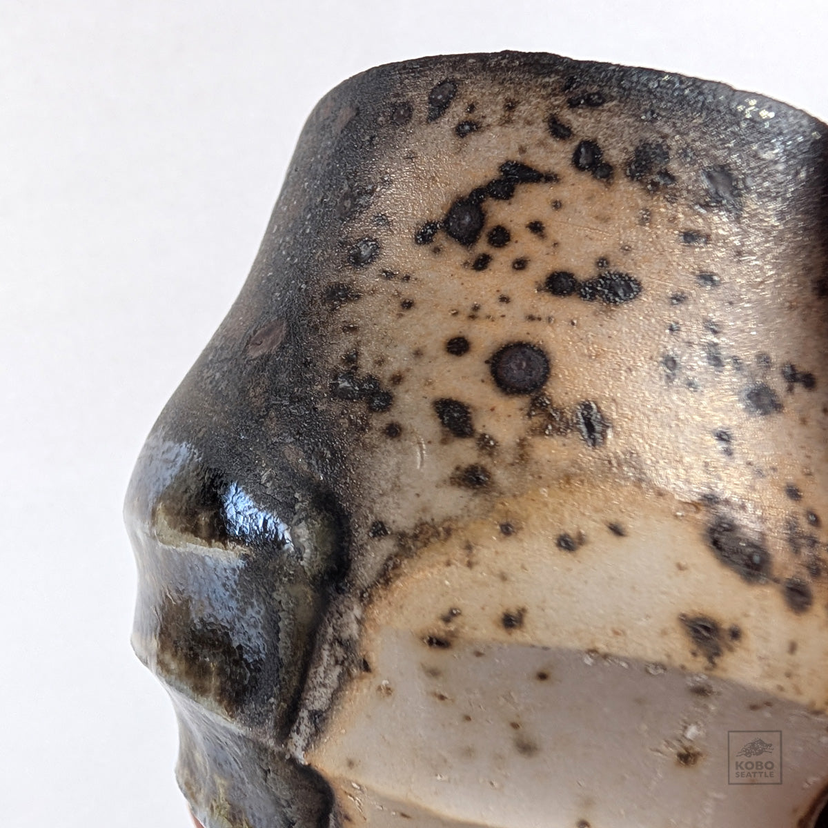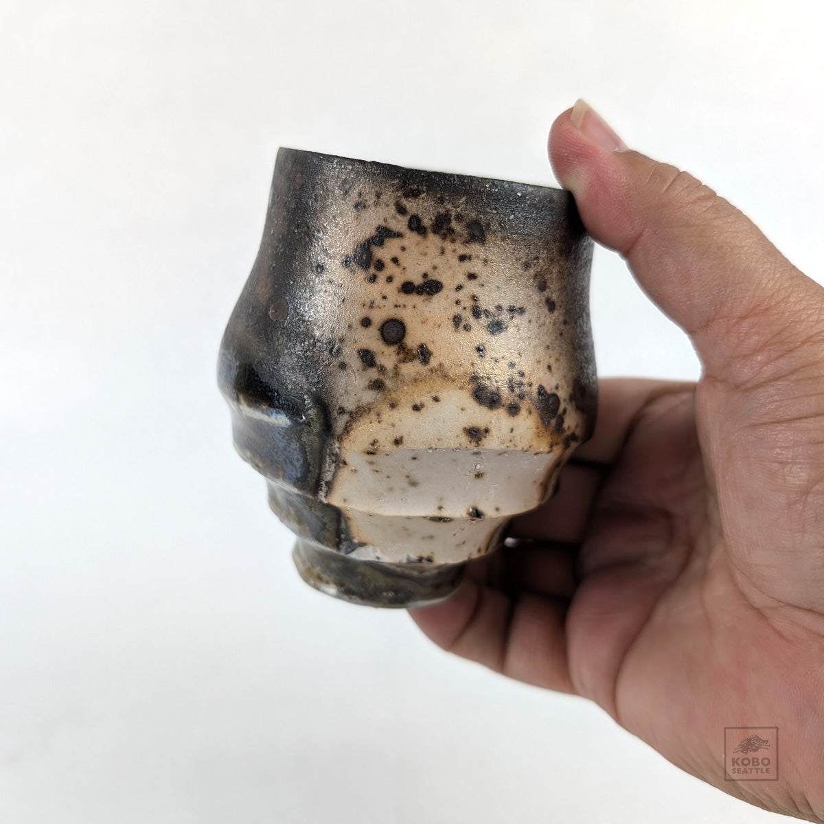Anagama-fired, reduction cooled "ripple cup", Porcelain w/wild clay inclusions, ~120hr firing