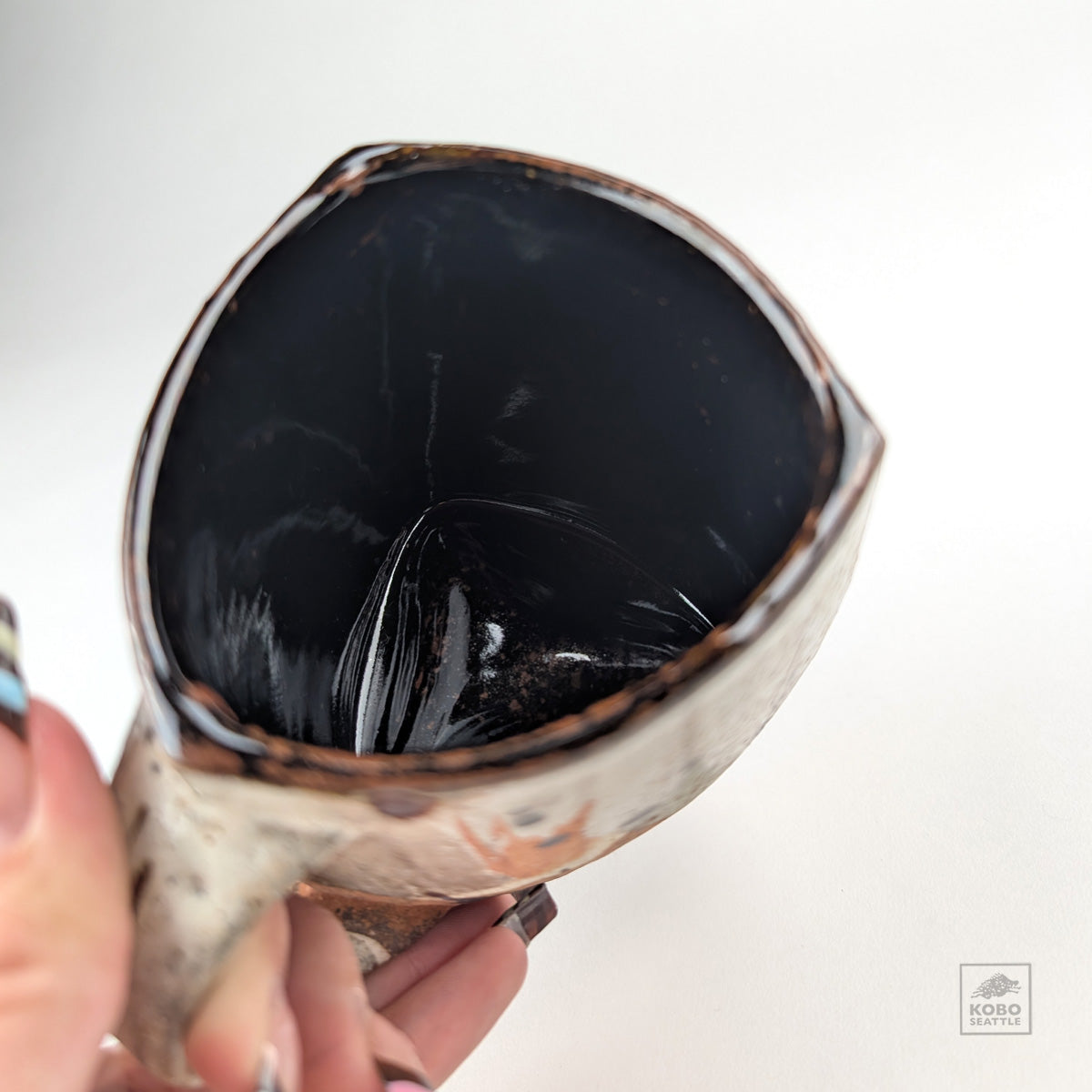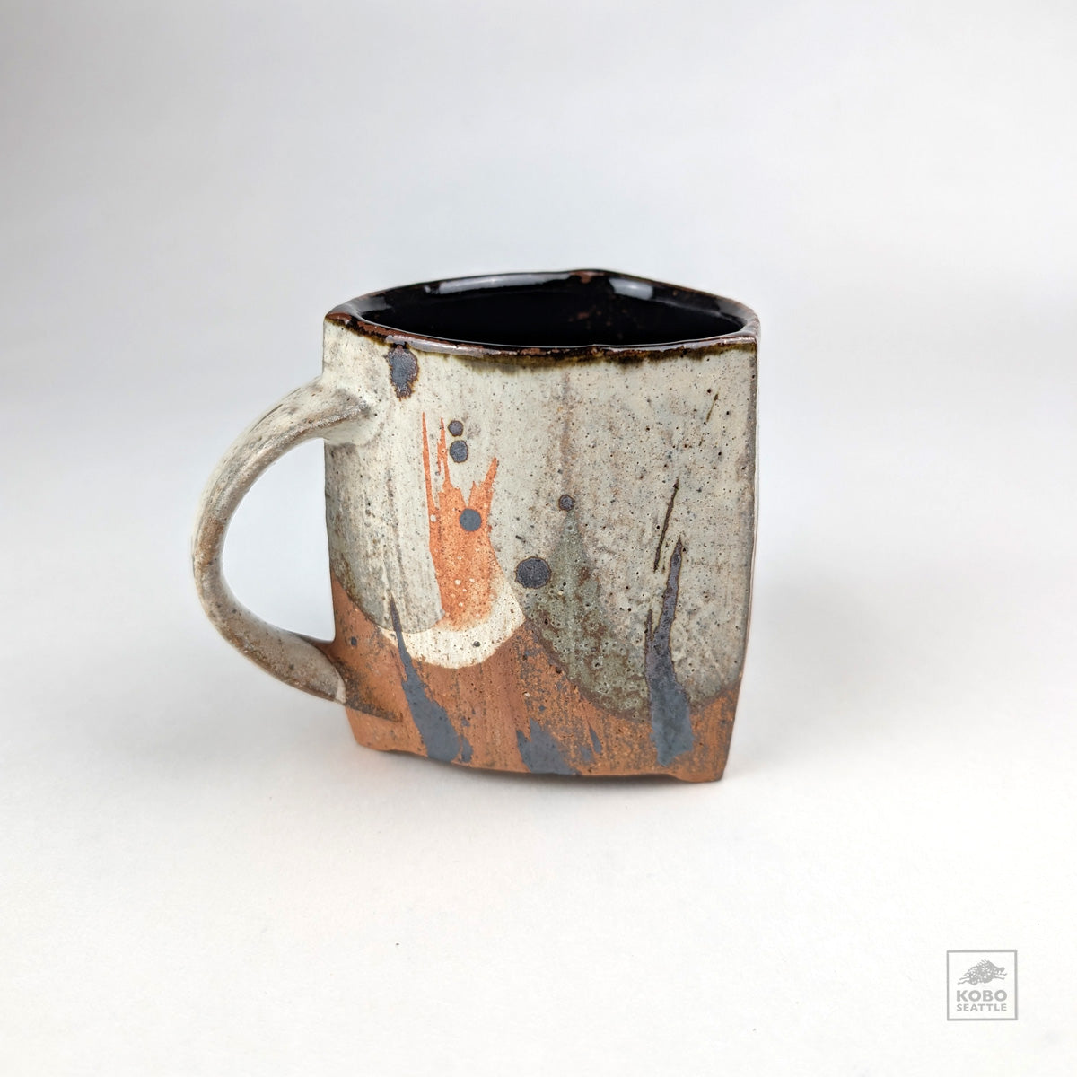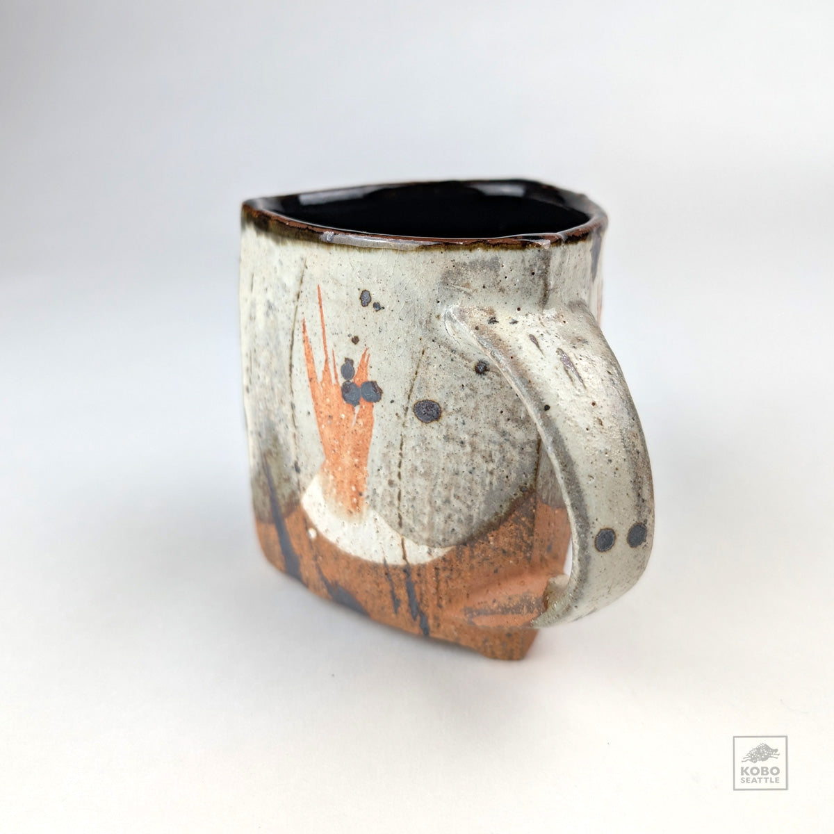 Triangle mug, NC clay, Iron OX, kohiki, cone 10
