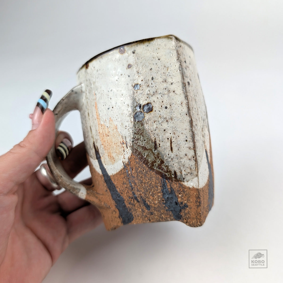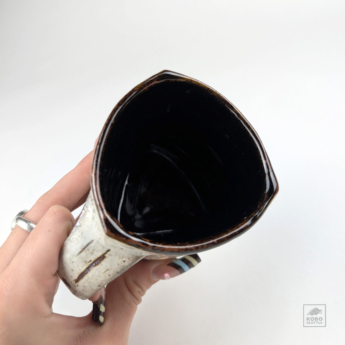 Triangle mug, NC clay, Iron OX, kohiki, cone 10