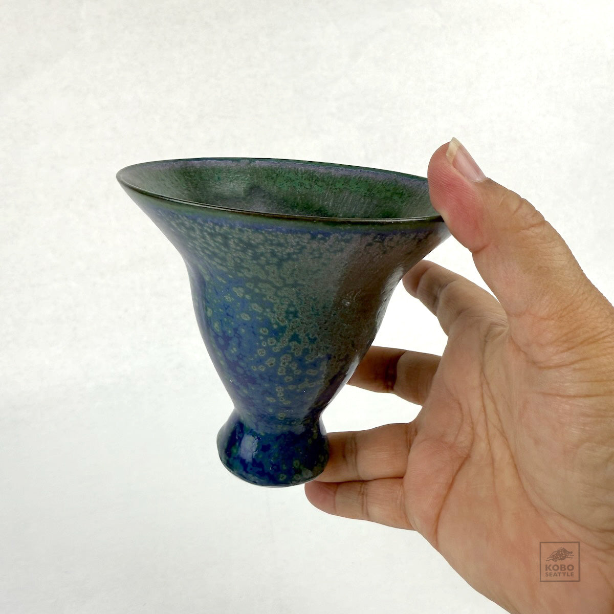 Cobalt glaze cup. Blend of earth and stone (porcelain earth). The glaze is an original blend used conalt. Rokuro molding. The beauty of the kiln change caused by reduction flames is a once in a lifetime chance beauty.