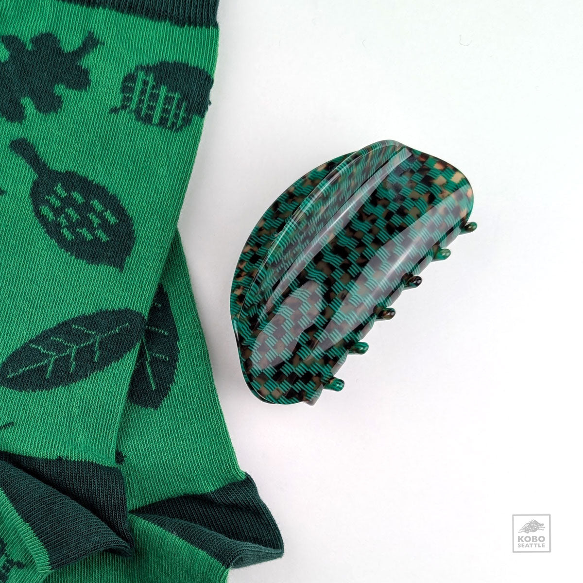 Green Claw Hair Clip: This medium sized hair claw is super versatile and works for all hair types and textures. Made from high quality acetate; a durable, plant based bio-plastic. Metal hardware is lead and nickel-free.