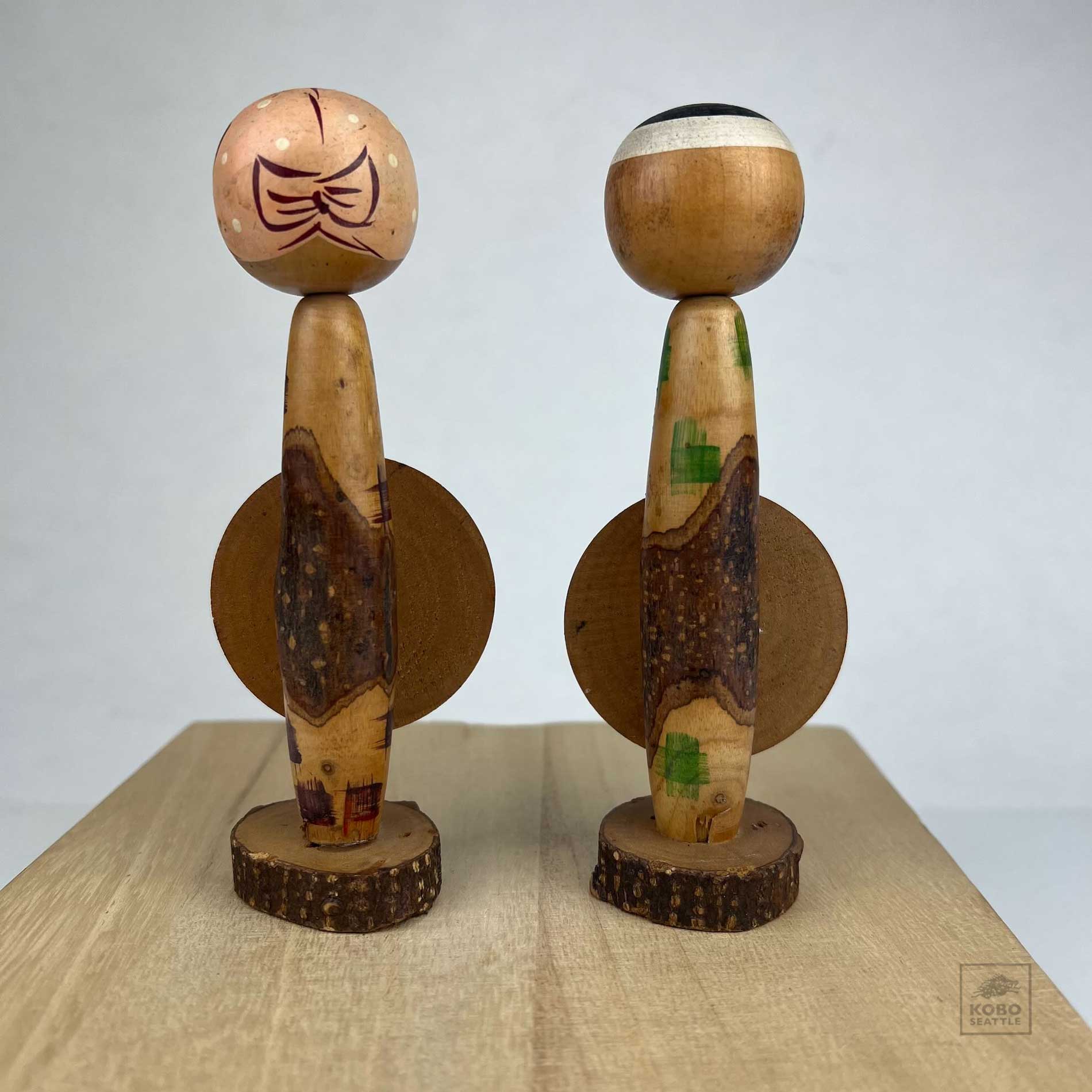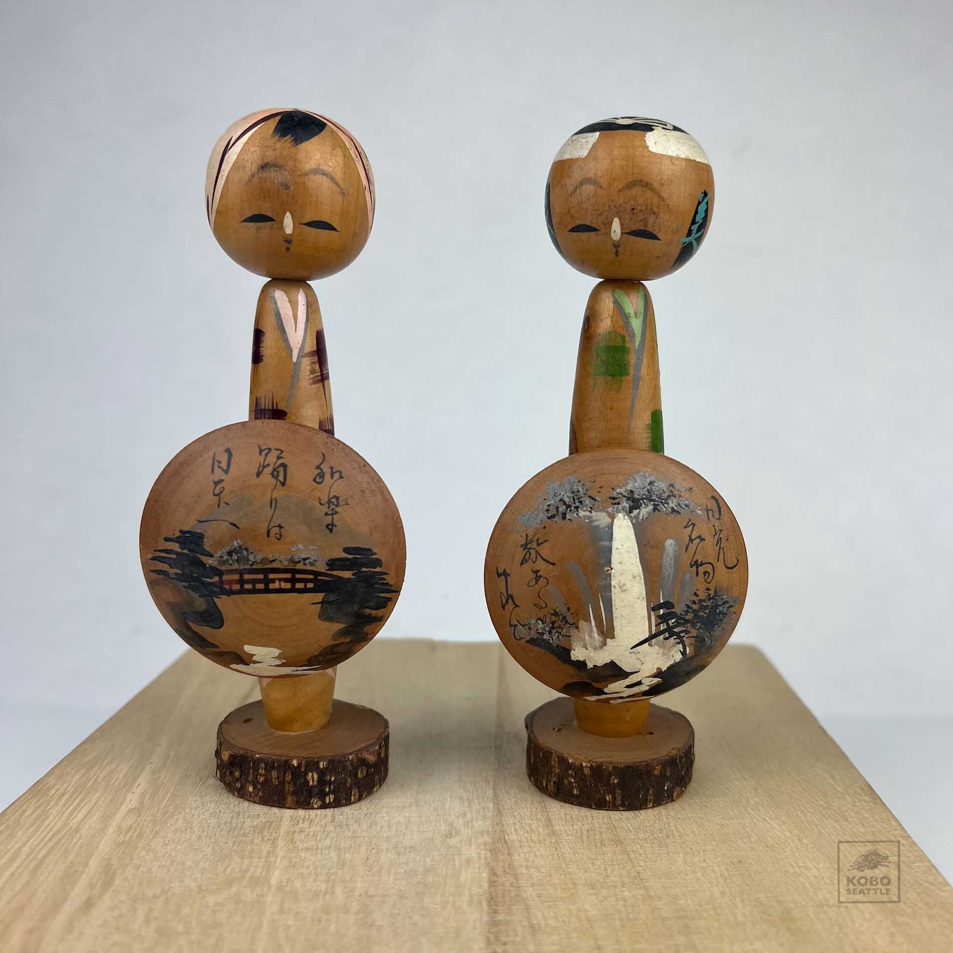 Vintage Japanese kokeshi. Hand painted wood dolls. Sold as a pair.