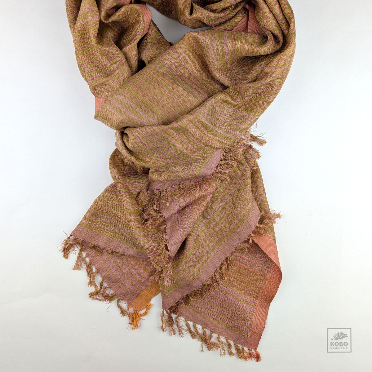 Handwoven mulberry silk stole. Waves of coral, pinks, and beige.
