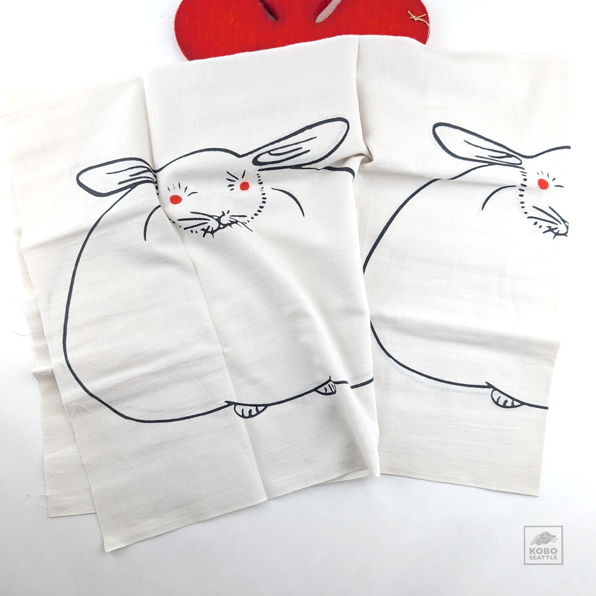 Usagi is rabbit in Japanese. This Japanese utility cloth (tenugui) is hand dyed using a traditional technique called "Chusen". The backside of the cloth is the same design as the front. 100% Cotton. Size Approx: 39" x 14". Japan.