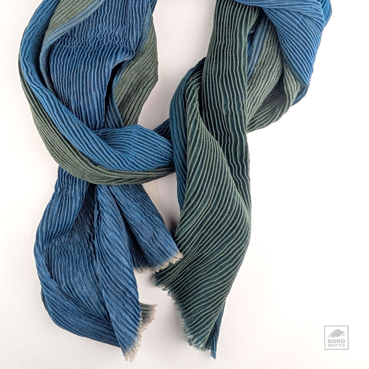 Shibori Dyed Wool Scarf - Teal/Sage Green
