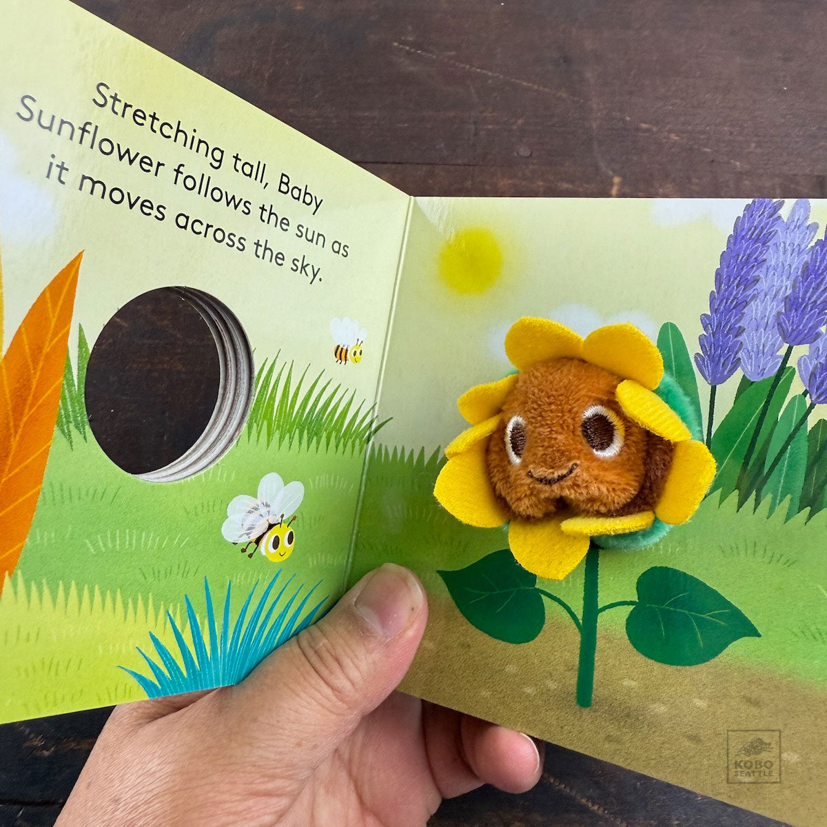 With its irresistible plush character, adorable illustrations, and sweet, simple text, this garden-themed offering from the bestselling Baby Finger Puppet series is guaranteed to delight parents and toddlers alike. Featuring a plush finger puppet that peeks into each lovingly illustrated page, Baby Sunflower offers parents and children a fun, interactive way to play and read as they build a lifelong love of books (and nature!) together.