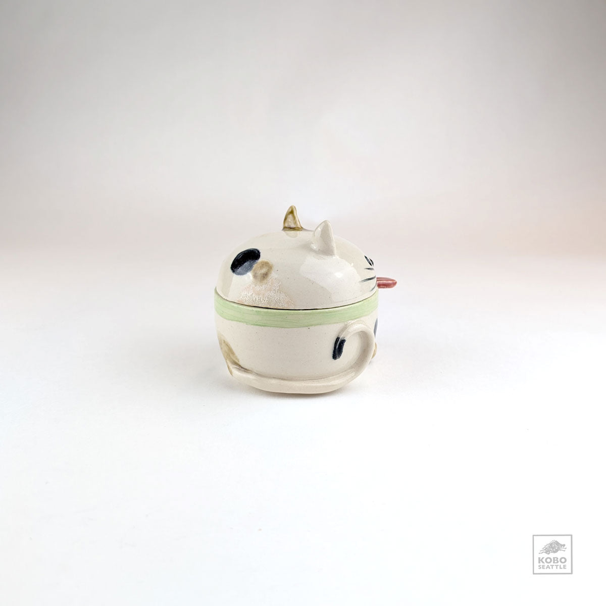 Ceramic Cat Jar with Spoon by Miky Ishida