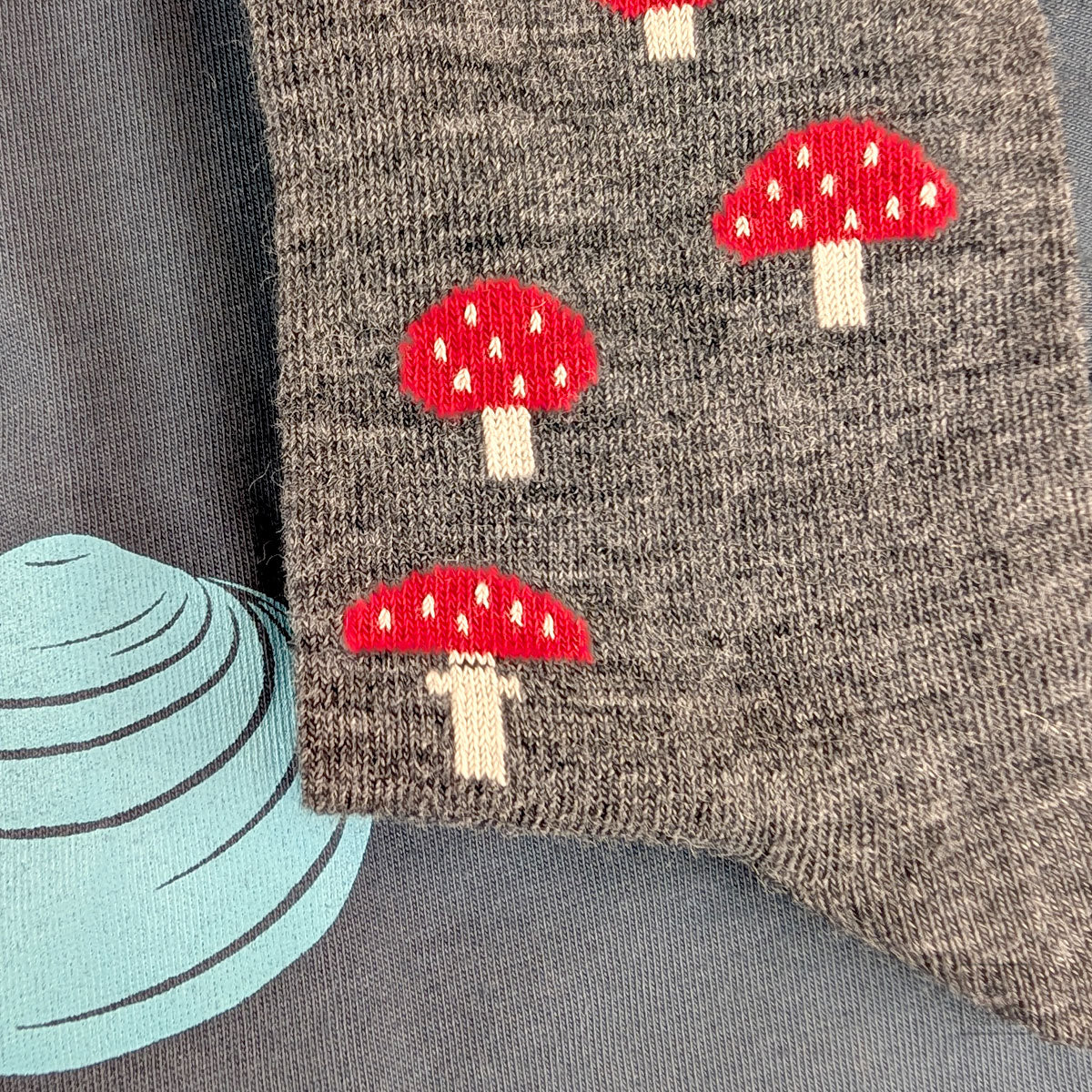 Possibly modeled by the Amanita muscaria, commonly known as the fly agaric or fly amanita, is a basidiomycete fungus of the genus Amanita. It is a large white-gilled mushroom typically featuring a bright red cap covered with white warts.