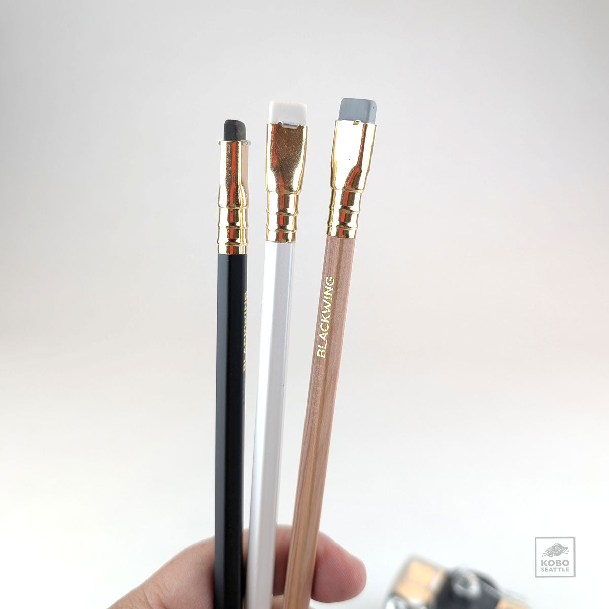 Three pencils, three different leads: Blackwing Pencil (soft) x1, Blackwing Pearl Pencil (balanced) x1, Blackwing Natural Pencil (extra firm) x1.