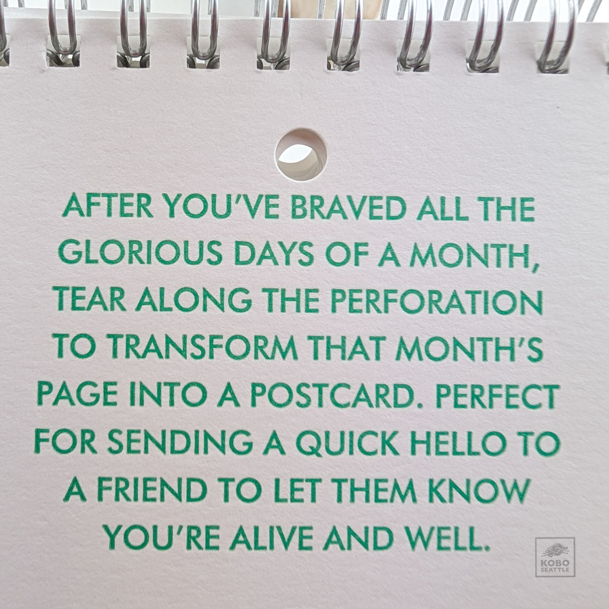 12 months of knowing which day it is, and 13 perforated cards to tear and send. Letterpressed in Portland, OR.
