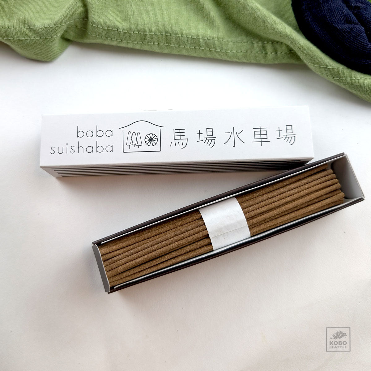 A natural incense stick made from raw cedar leaves that was created using 100% renewable energy from a water wheelhouse. No artificial fragrance or color used. The only ingredients are Japanese Cedar powder and tabunoki powder (Japanese Bay), so it is safe and suitable to use for praying, relaxing, and even as insect repellant. Made in Yame, Fukuoka, Japan, by Takeshi Baba and his wife Chieko. 1 bunch = 60-70 sticks.