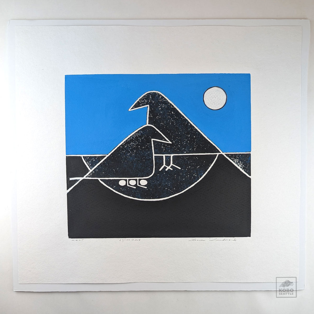 This is an original art print, printed with hand carved blocks and water-based paints.