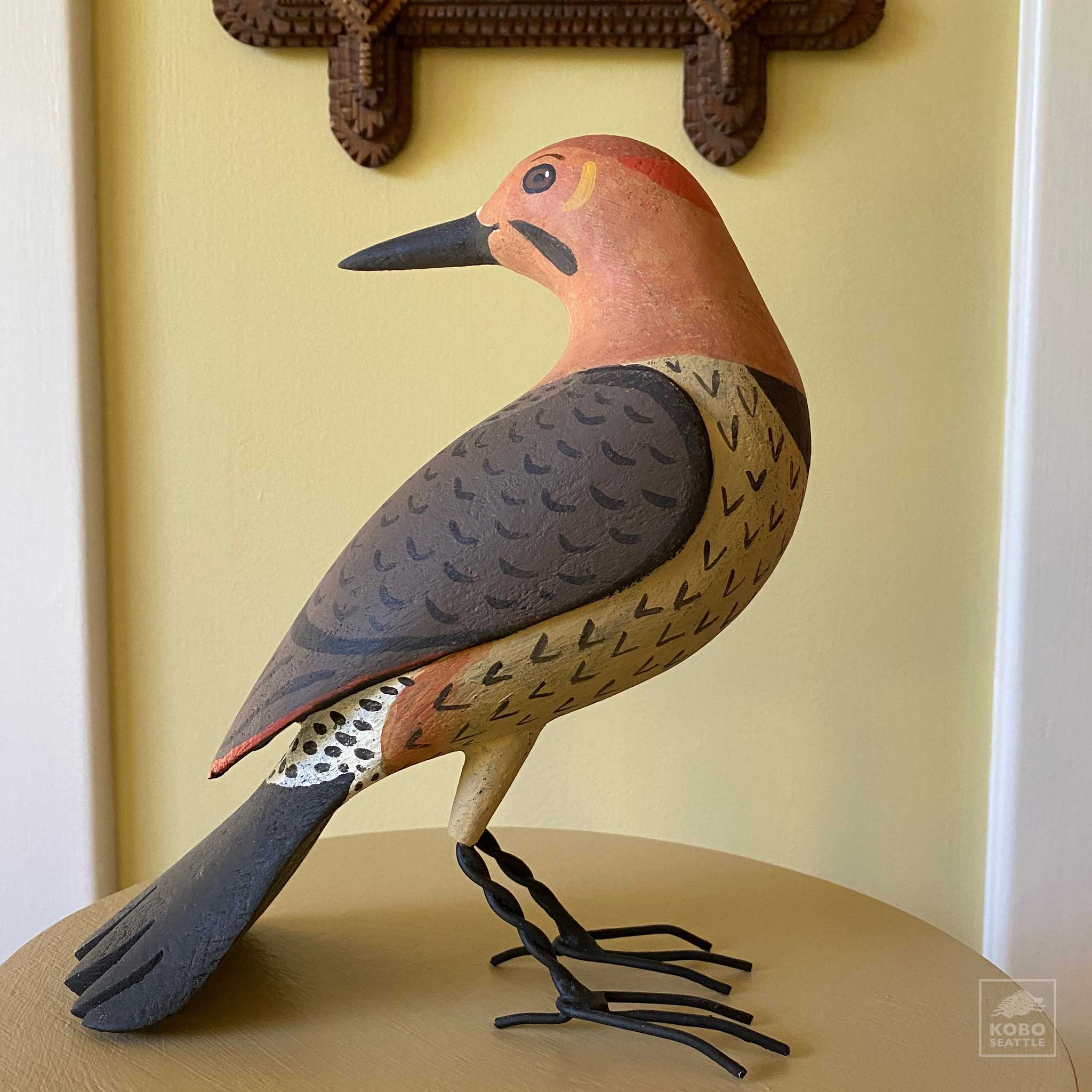 Handcrafted bird by modern-day folk artist Michael Zitka. Self taught, Michael transforms humble materials from the lumberyard into woodpeckers, robins, and his coveted crows.