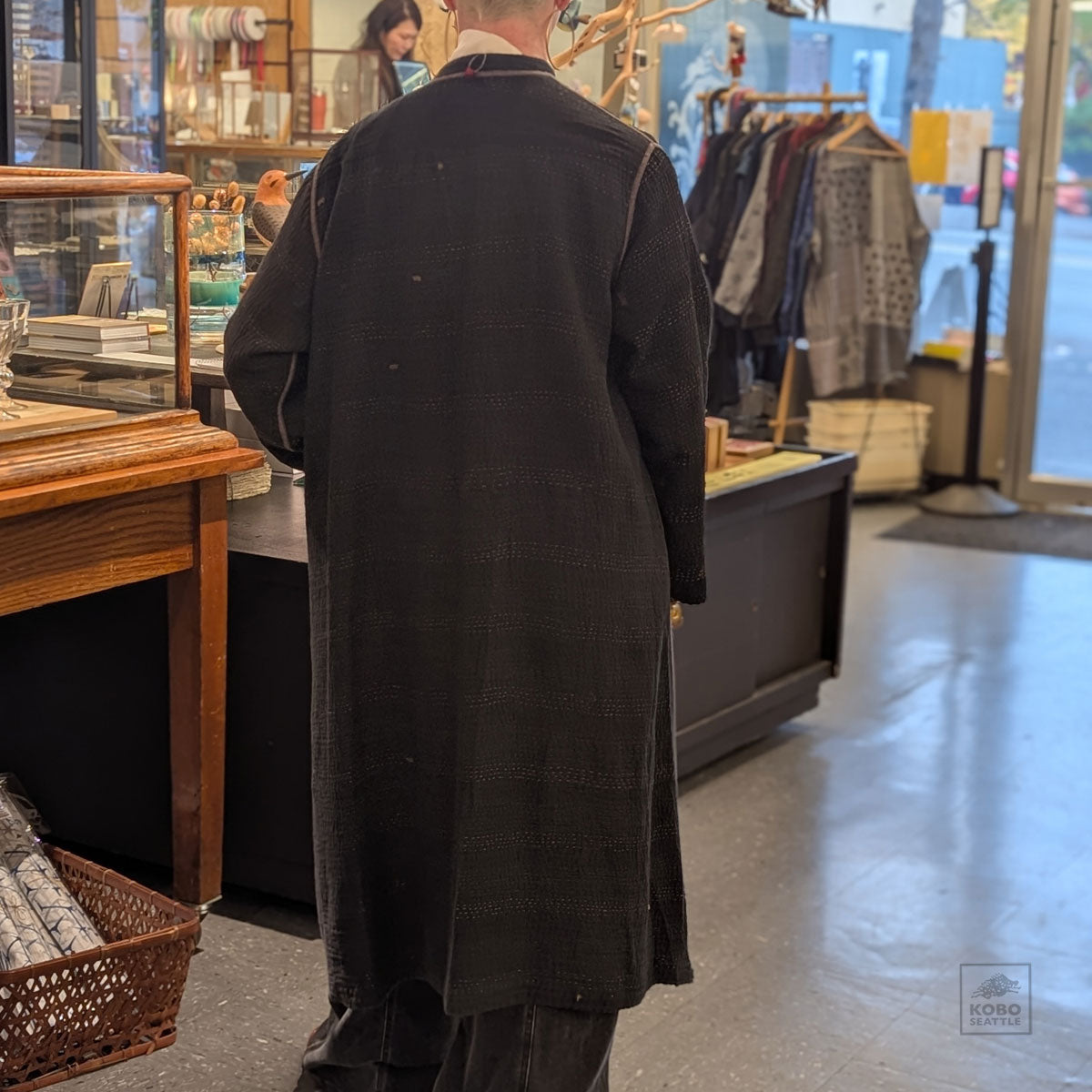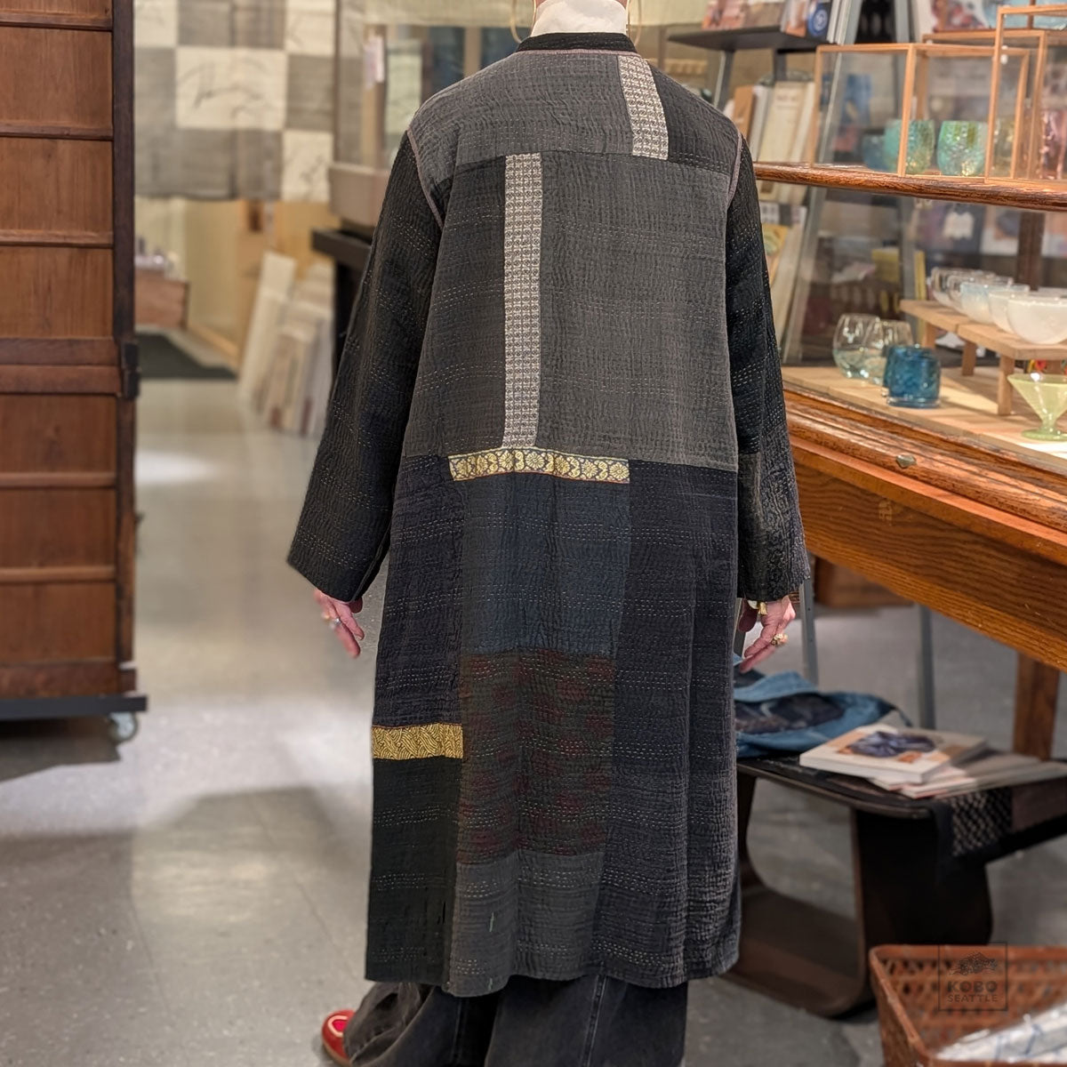 Mieko Mintz's focus is a Kantha line that is not only comfortable, but contemporary and sophisticated. She finds romance in the saris’ reincarnation in the new Kantha: old saris coming back to life in a totally different time and land. And its integration with Kimono tradition moves the clothing into a new realm of international relevance. All pieces are reversible, and come with a Lifetime Repair policy.